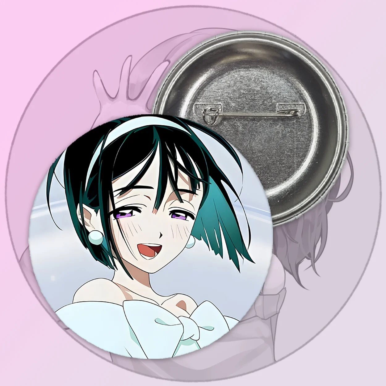 Опис дизайну: Значок є ідеально круглою металевою поверхнею із зображенням популярного персонажа або сцени з аніме.
